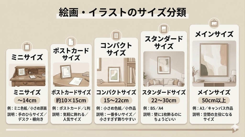 「素敵だな」と思っても、サイズや使われている画材が分かりにくくて迷ったことはありませんか?