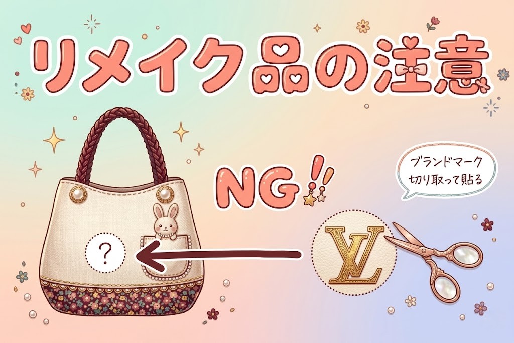 高級ブランドの「ルイヴィトン」や「シャネル」の柄やロゴを模倣(マネ)したバッグやアクセサリーなどの販売禁止です。