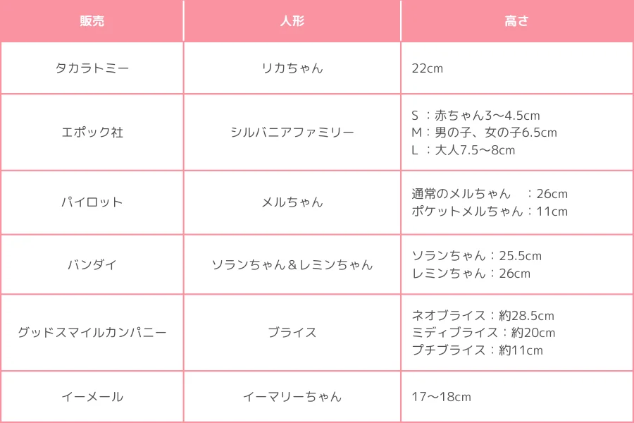 ↳メルちゃんなど