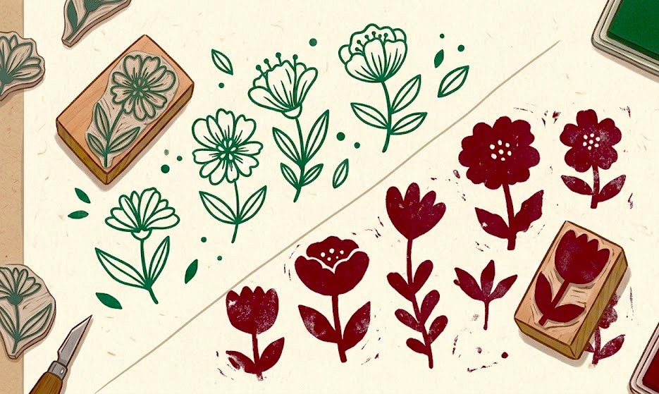 最近…、消しゴムはんこの作品の紹介のために、たくさんのハンコ見ていたんですが…